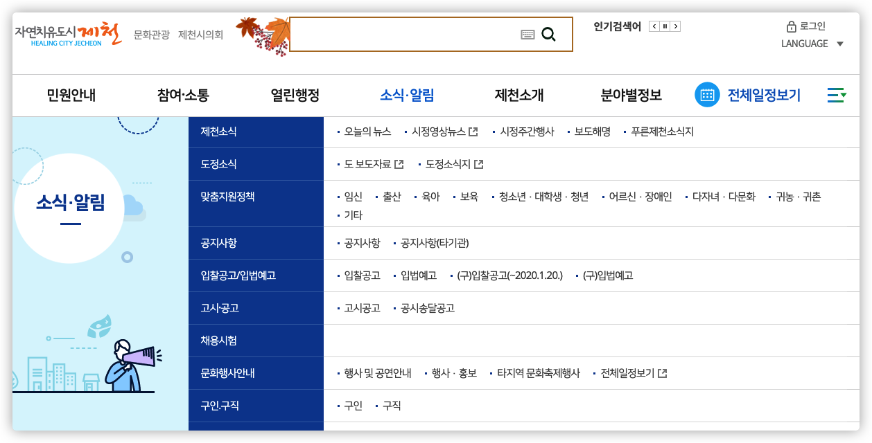 제천시청 구인구직 정보를 확인하고 활용하기 위해서는, 제천시청 공식 홈페이지를 들어가야겠죠.