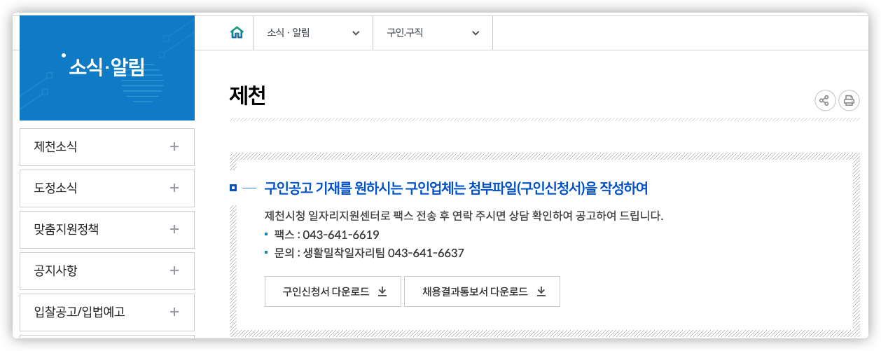 제천시청 구인구직