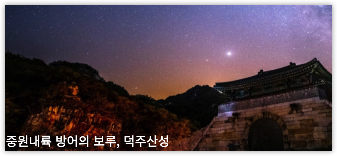 다음으로 덕주산성이 있습니다. 특히 야간에 가면 경관이 예술적인 곳입니다.