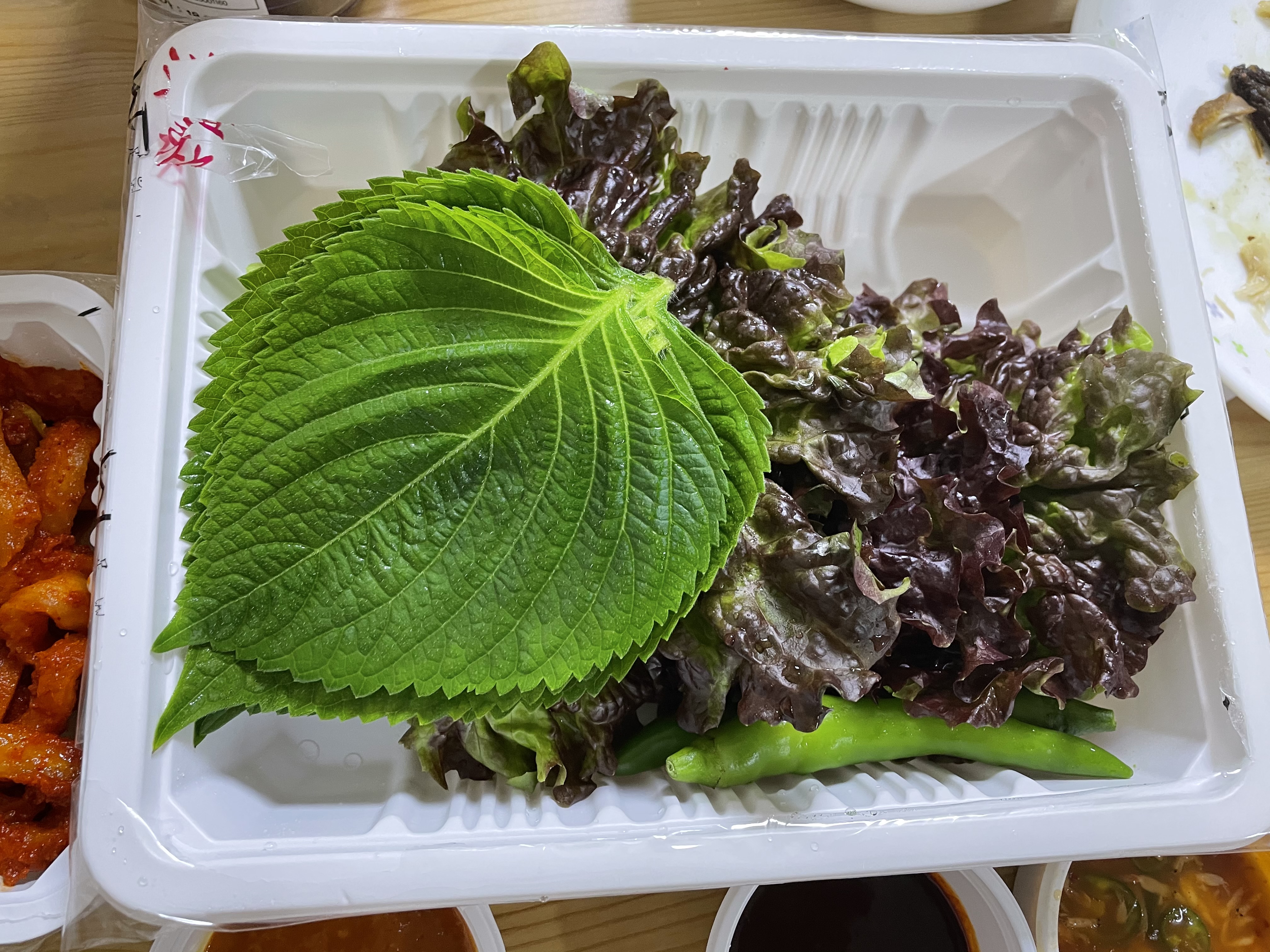 야채도 상추만 몇 장 들어있는 게 아니고 깻잎과 고추도 당연히 함께 제공이 됩니다.