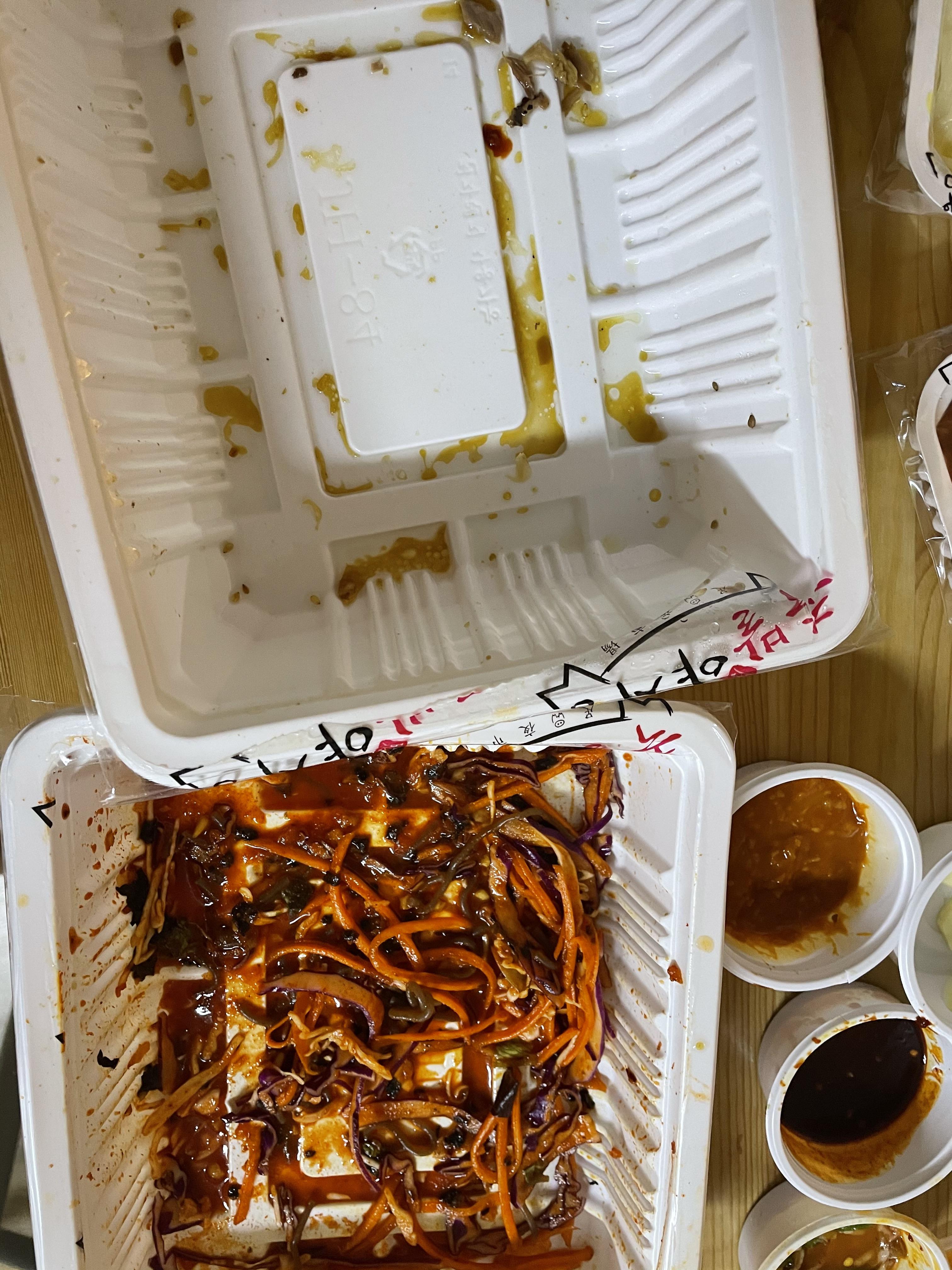 둘이서 한 15분 만에 정신없이 족발 중 사이즈를 올 클리어 해 버렸습니다.