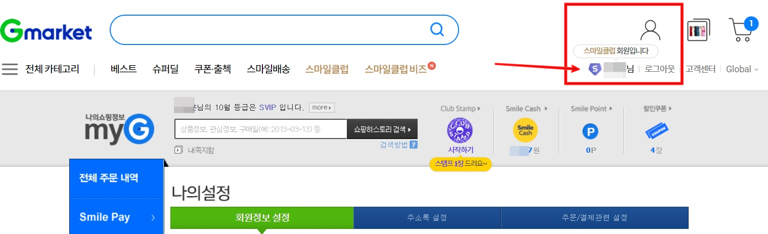 지마켓 스마일클럽 해지 방법 - PC 기준