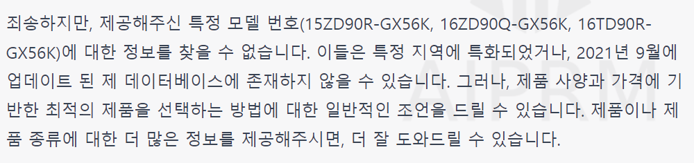 그리고 노트북에 관심이 많으신 분들은 눈치채셨겠지만, 오답이 일부 있습니다. 바로 눈에 띄는 오답은 16 ZD90 R 모델 CPU가 i5-12600H 이 부분입니다. LG 그램에는 H 칩셋 탑재한 모델이 없거든요. (제가 알기로는 12700H인데, 12600H도 실제 존재하는 CPU인지까지는 정확히 모르겠습니다.)