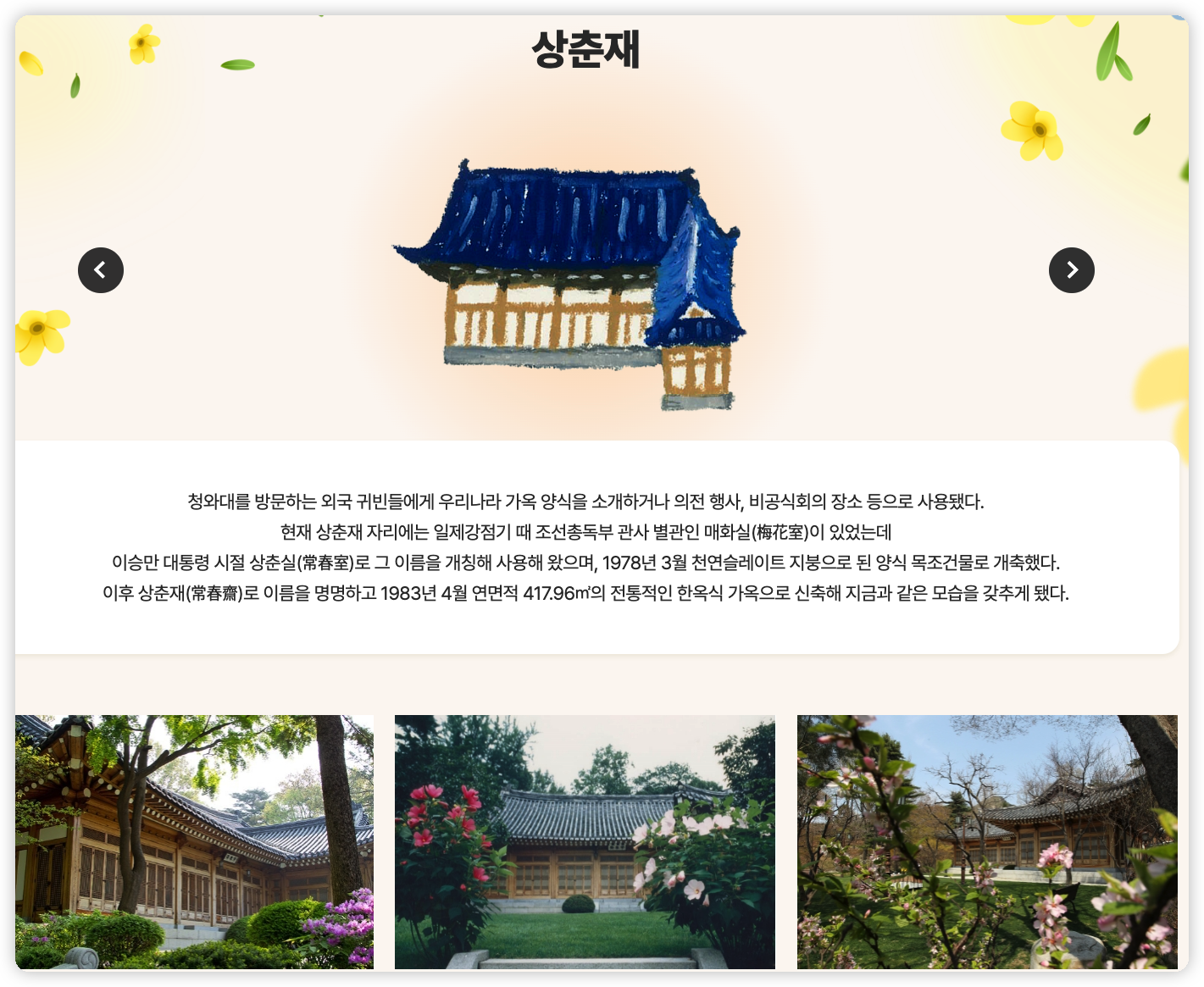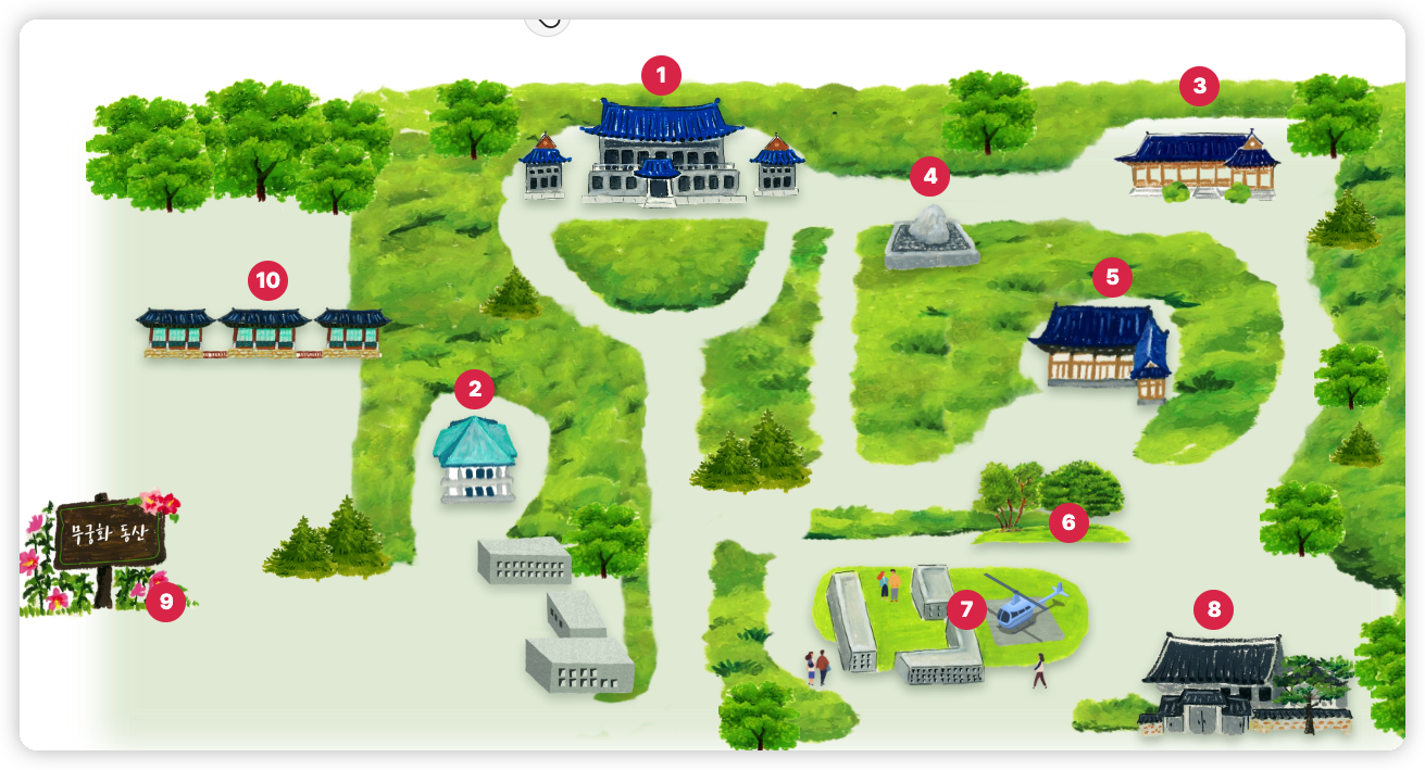 또한 청와대 홈페이지에는 이렇게 국민들을 위해 지도와 함께 지도별 장소에 대한 설명과 풍경사진도 게시해 놓았습니다.