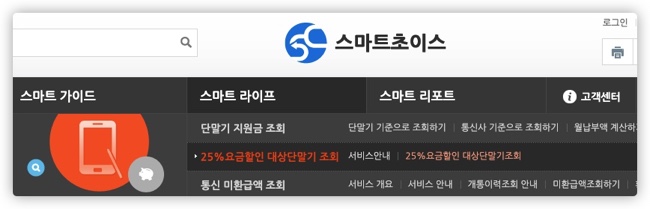 그리고 스마트초이스 홈페이지에서는, '선. 택. 약. 정'이라고 불리는 25% 요금할인 대상 단말기 조회도 가능합니다.