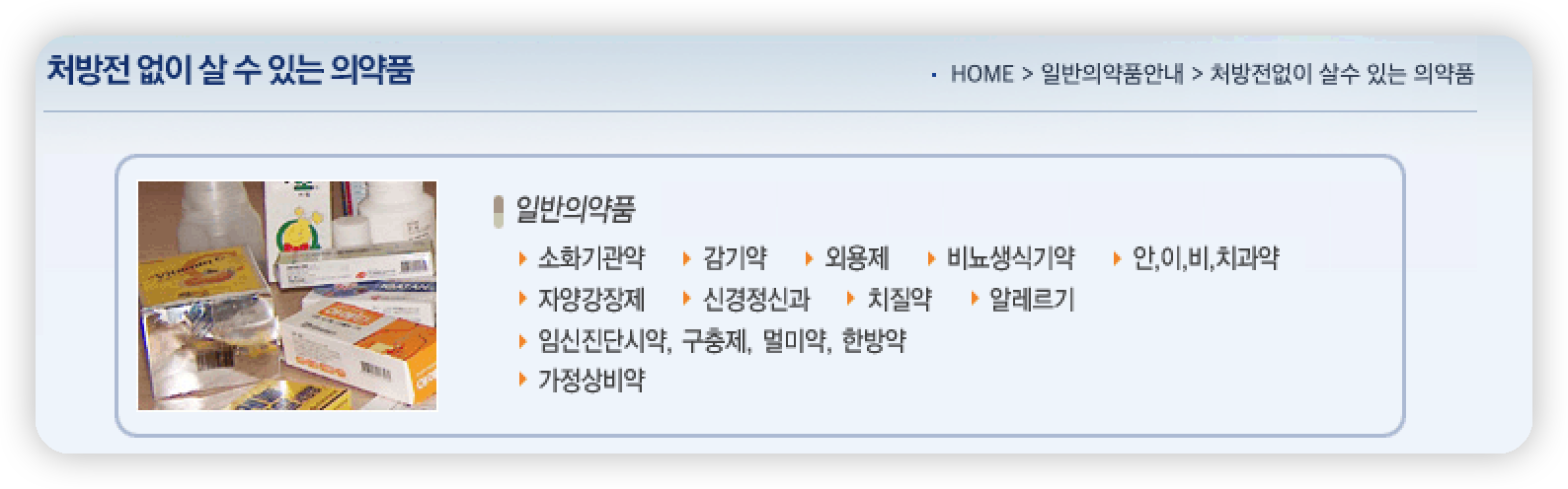 또한 별도 병원처방 없이 약국에서 바로 살 수 있는 일반약에 대한 종류도 확인하실 수 있습니다.
