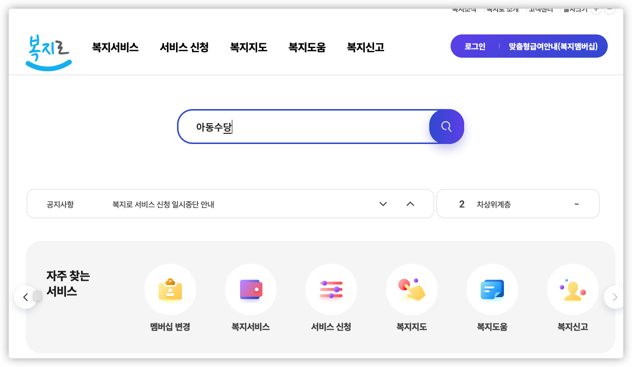 아동수당 신청은, 복지로 홈페이지에서 가능합니다.