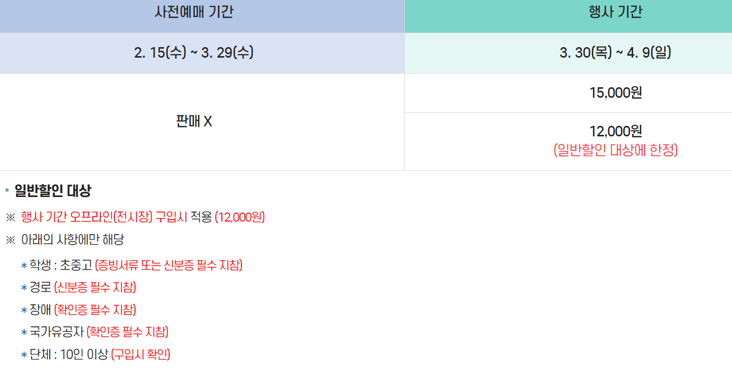 3월 30일부터 4월 9일 사이 킨텍스 모빌리티쇼 현장에 직접 가셔서 현장 티켓 구매를 하시면 15,000원이지만, 학생과 경로대상자, 장애인이나 10인 이상 단체의 경우 얼리버드와 동일한 12,000원에 구매가 가능합니다.