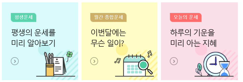 오늘의 운세나 띠별 운세, 평생운세 등은 동일하게 서비스합니다.