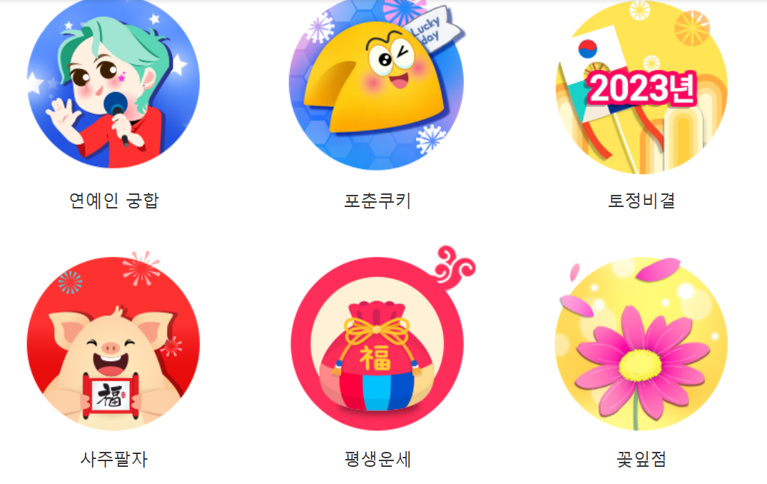오늘의 운세나 띠별 운세, 평생운세 등은 동일하게 서비스합니다.