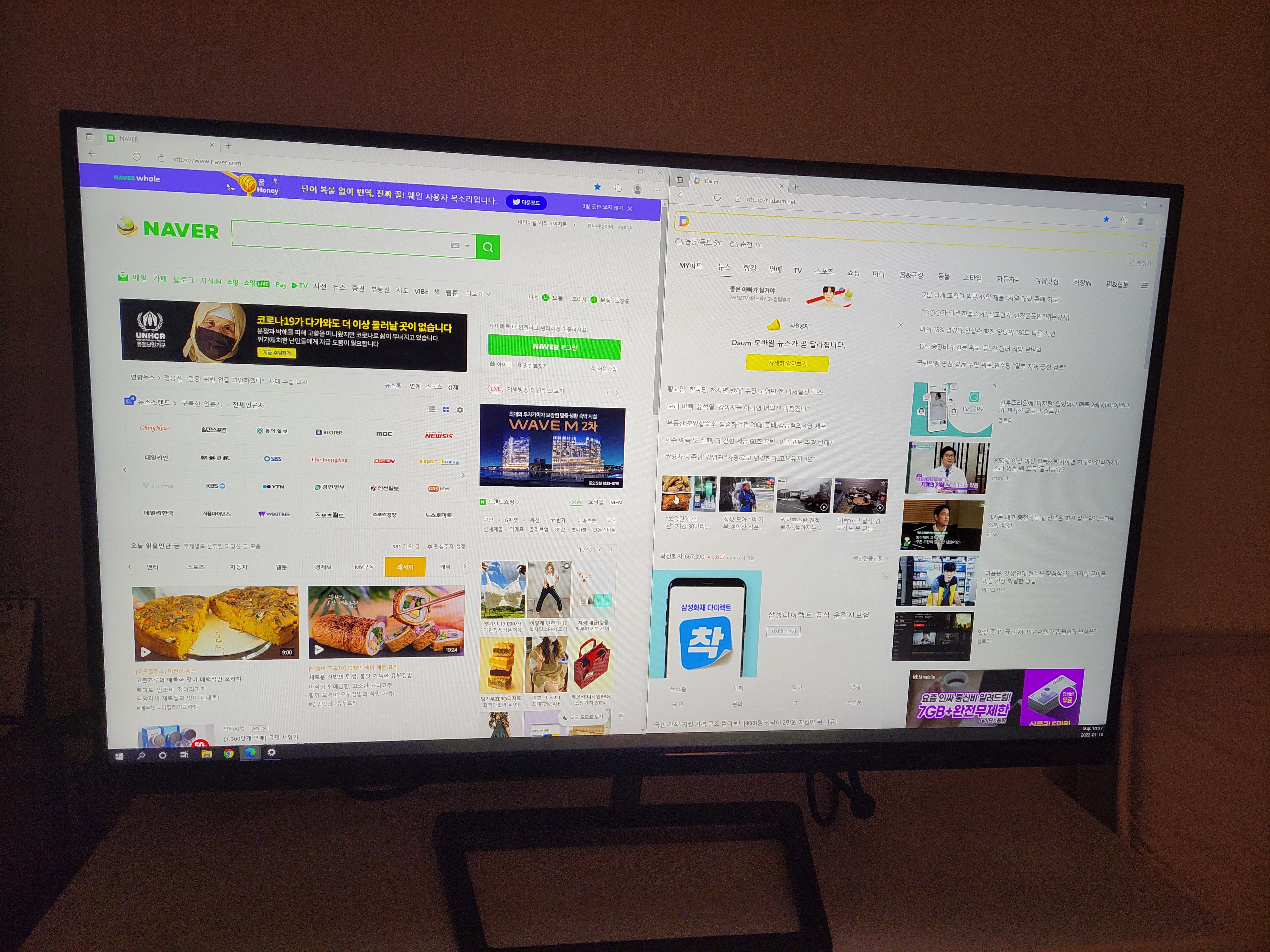 27인치이면서 QHD 해상도답게 화면을 좌우 분할해서 띄워도 가로 스크롤 없이 세로 스크롤만으로 모든 웹페이지를 볼 수 있습니다. 바로 이 점 때문에 굳이 27인치에 별로 없는 QHD 네이티브 해상도 모델을 구매하였습니다.