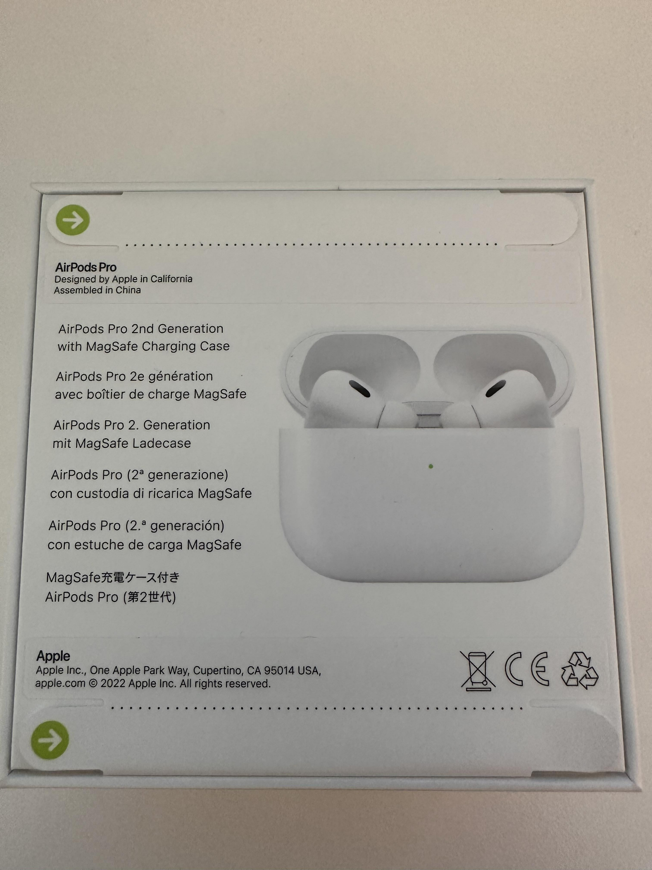 에어팟 프로 2세대 박스 패키징입니다. 박스만 단독으로 놓고 보면 이게 에어팟 프로 1세대인지 2세대인지 구분이 한 번에 되지는 않네요. (사실 유닛 안쪽의 검정 센서 부분 위치나 크기로 차이 구분이 가능하긴 합니다.)