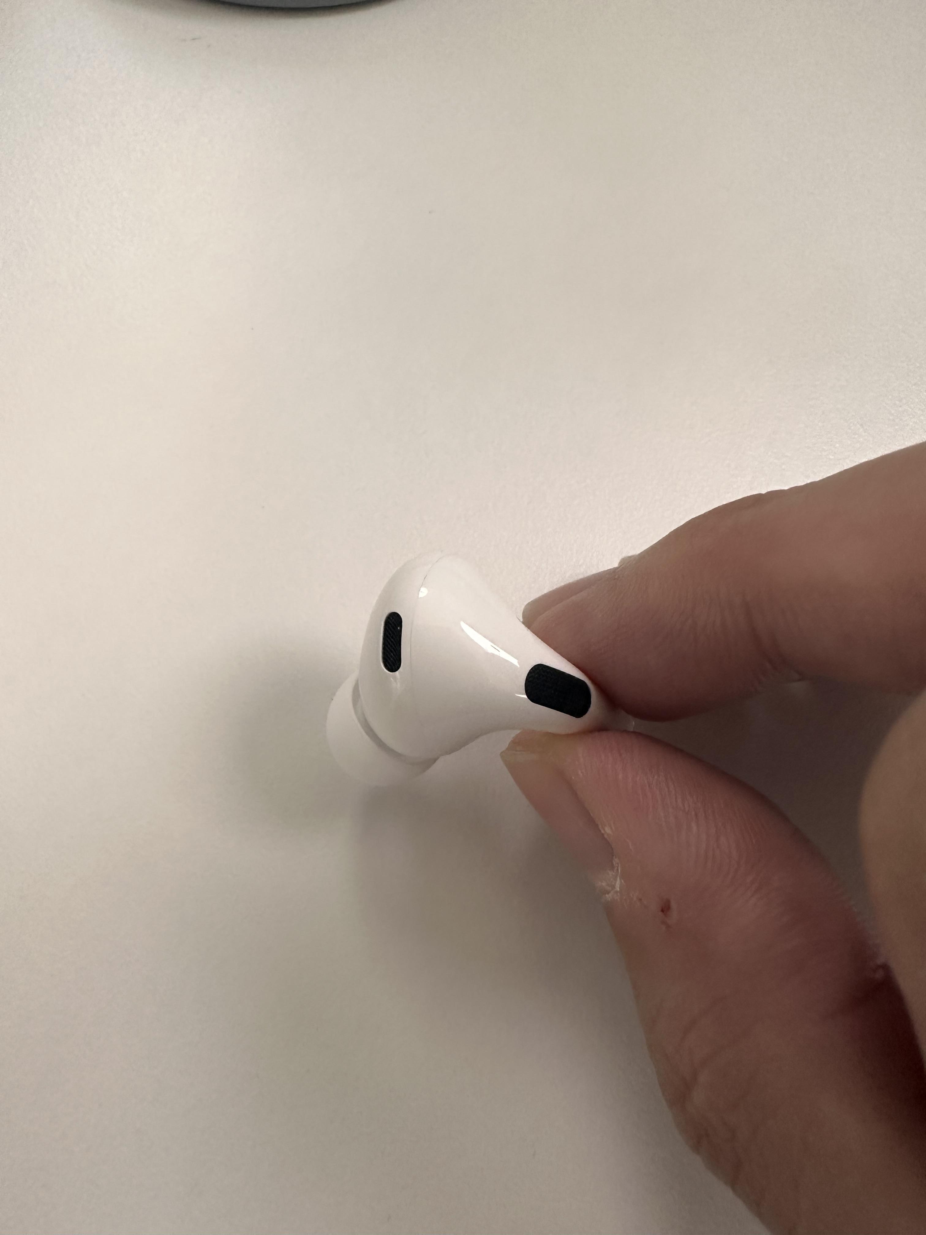 에어팟 프로 2세대 유닛은 전체적으로 디자인이나 크기는 1세대와 대동소이합니다. 다만 이번에 추가된 기능이 대롱 부분을 위아래로 스윽 올리거나 내리면 볼륨을 키우거나 줄이는 기능입니다. 그동안 정말 바라왔던, 그리고 필요한 기능인데 이번 에어팟 프로 2세대에 와서 구현되었네요.