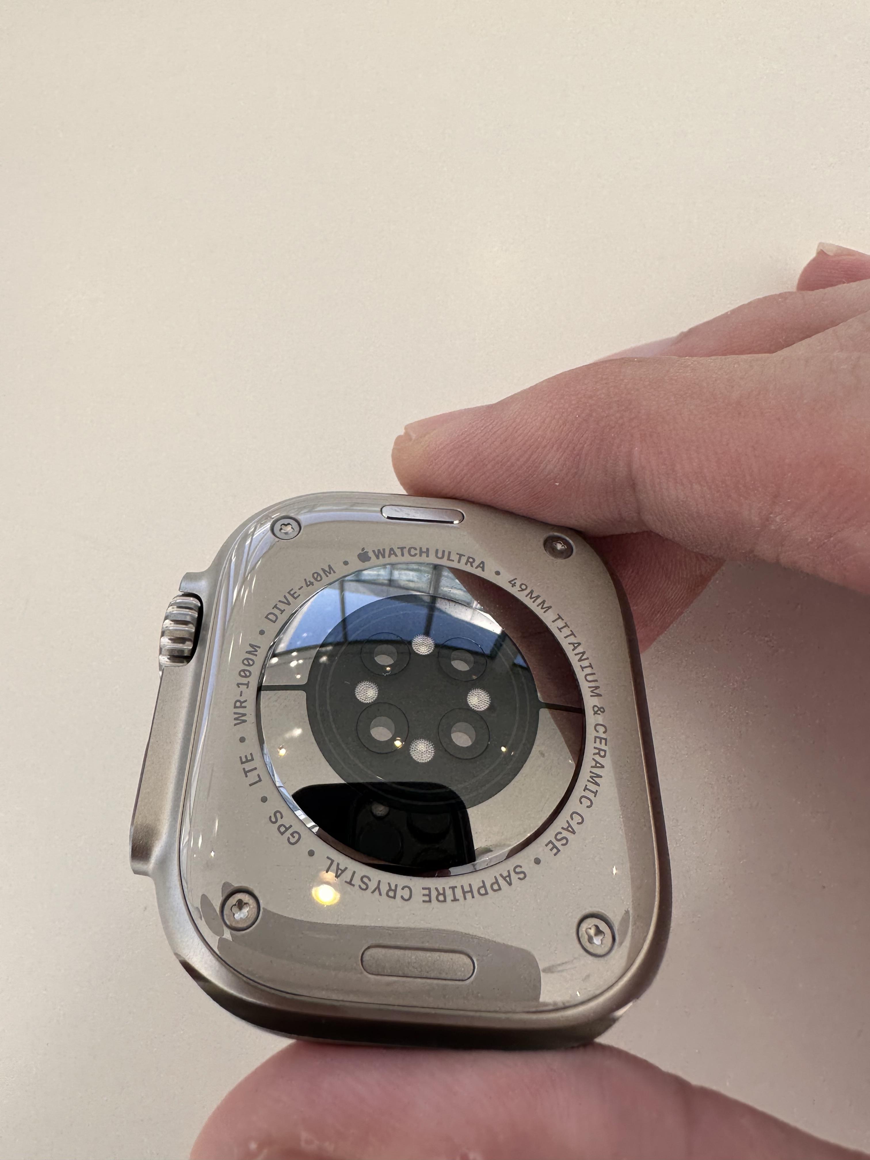 애플워치 울트라 후면은 세라믹 소재로 되어 있다고 합니다. 그래서 그런지 색상과 디자인이 정말 너무 예쁩니다. 여태껏 본 스마트워치 후면 중 가장 예뻐 보입니다. (개인 취향 존중)