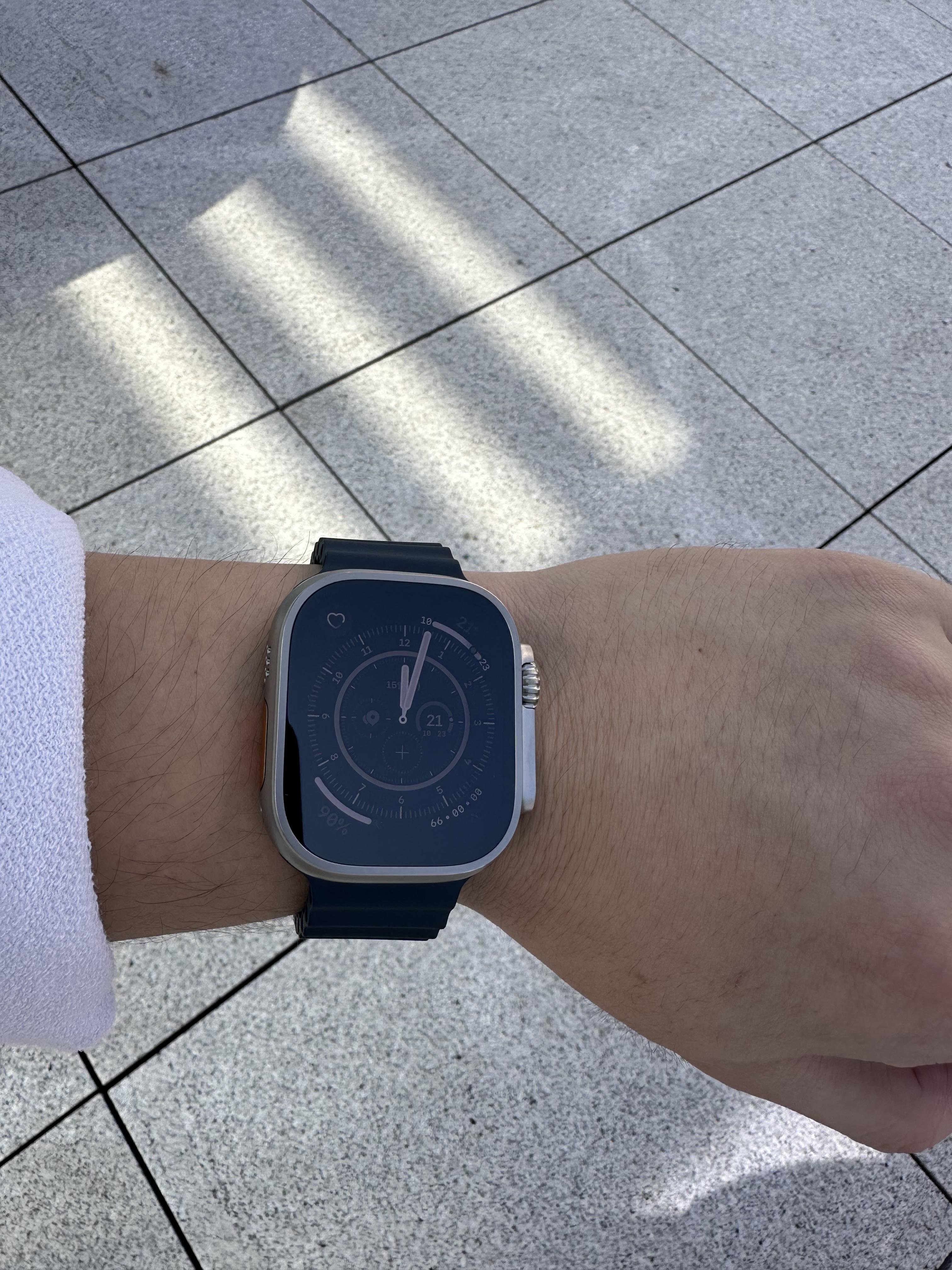 사진으로 다 담을 수 없는 게 아쉽네요. 애플워치 울트라 고민되시는 분들은 실착 한번 꼭 해 보시길 추천합니다.