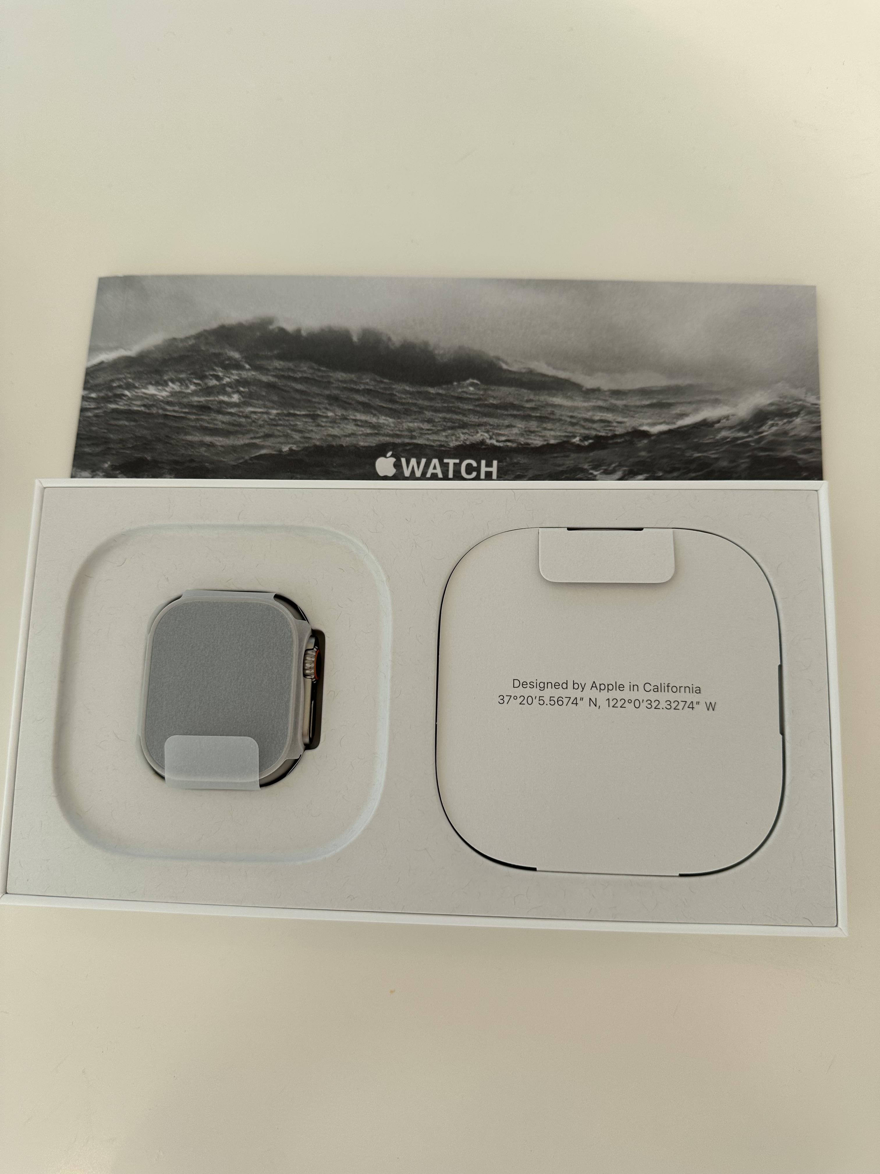 본체가 들어있는 박스를 열면, 애플워치 울트라 본체와 함께 애플워치 충전기가 들어 있습니다.