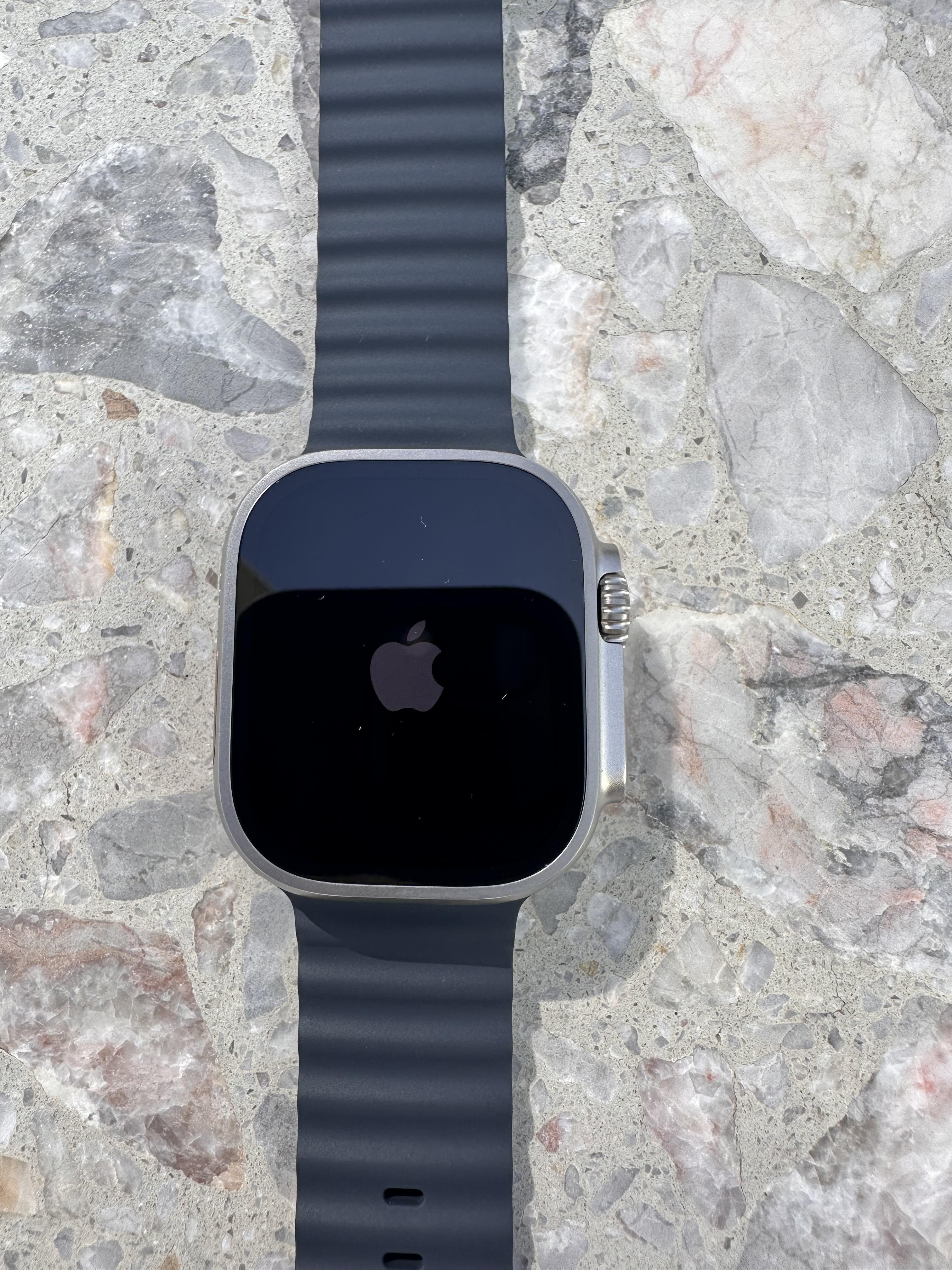 애플워치 울트라 오션 밴드 미드나잇 색상을 결합한 모습입니다. 정말 너무 예쁩니다. 특히 오션 루프가 사진과 다르게 굉장히 깔끔하고 고급스럽습니다.