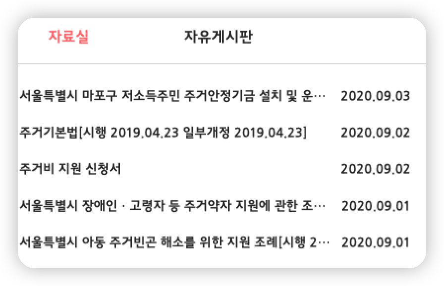 주거안심종합센터 복지 지원 항목 둘러보기 👈