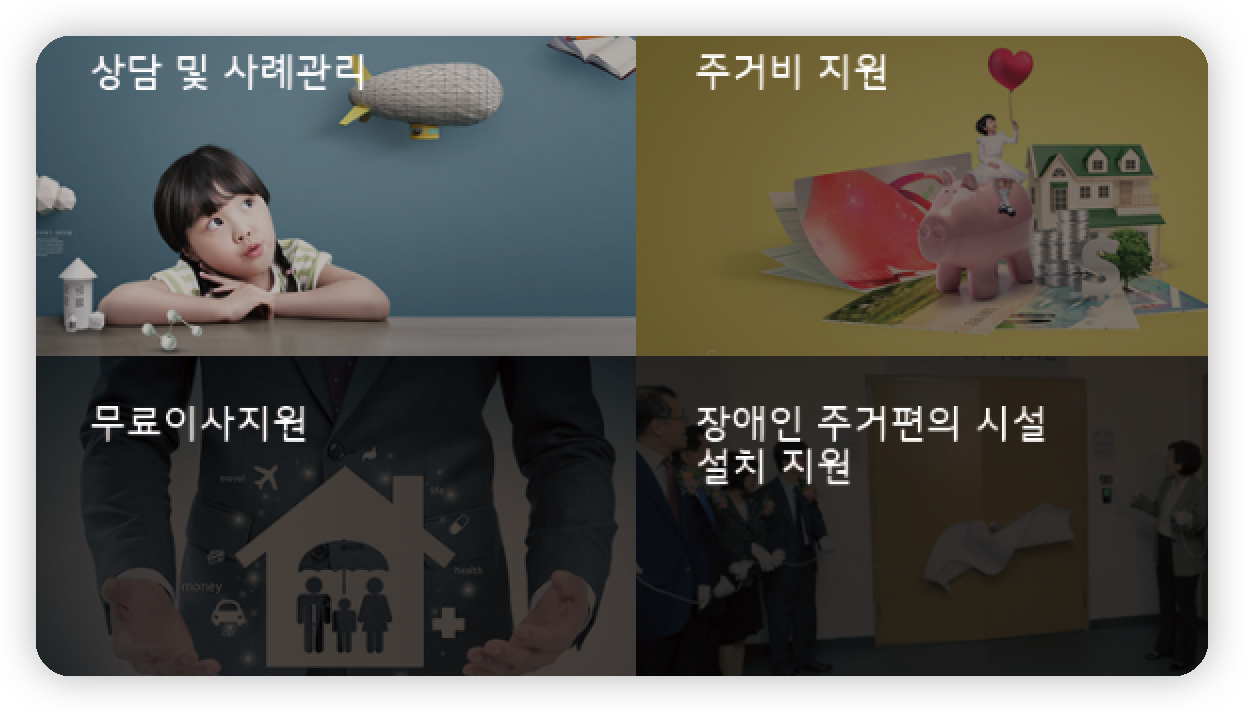주거안심종합센터 복지 지원 항목 둘러보기 👈