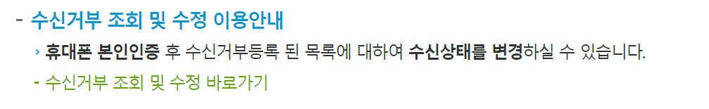 갑자기 한 번에 수신거부가 되니 또 막상 필요한 전화를 놓치면 어쩌나 하는 막연한 두려움이 생길 수 있습니다. 그럴 경우 위와 같이 수신거부 철회를 할 수 있습니다.