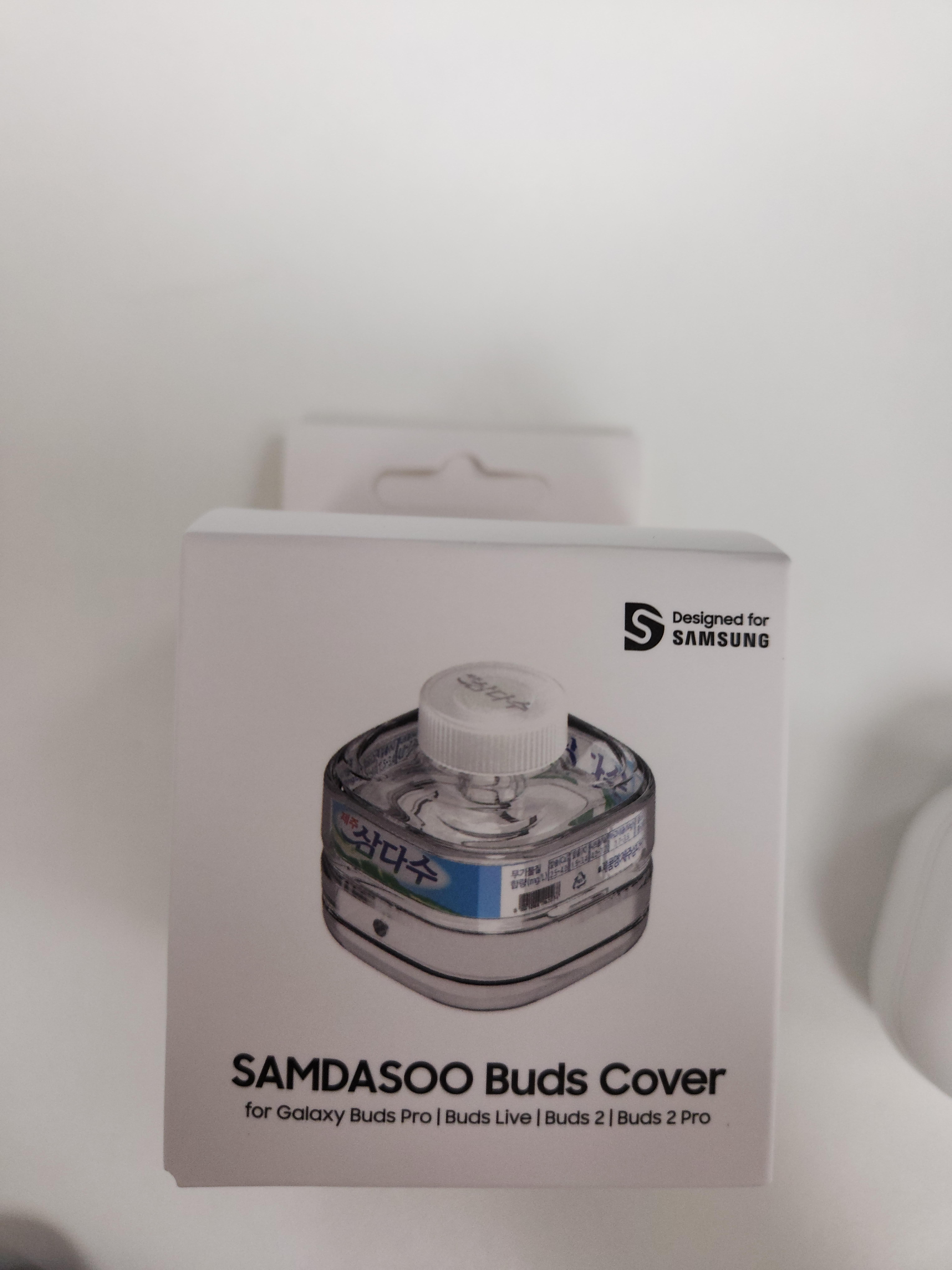갤럭시 버즈2 프로 삼다수 케이스 패키징입니다. designed for Samsung이 눈에 띄네요.