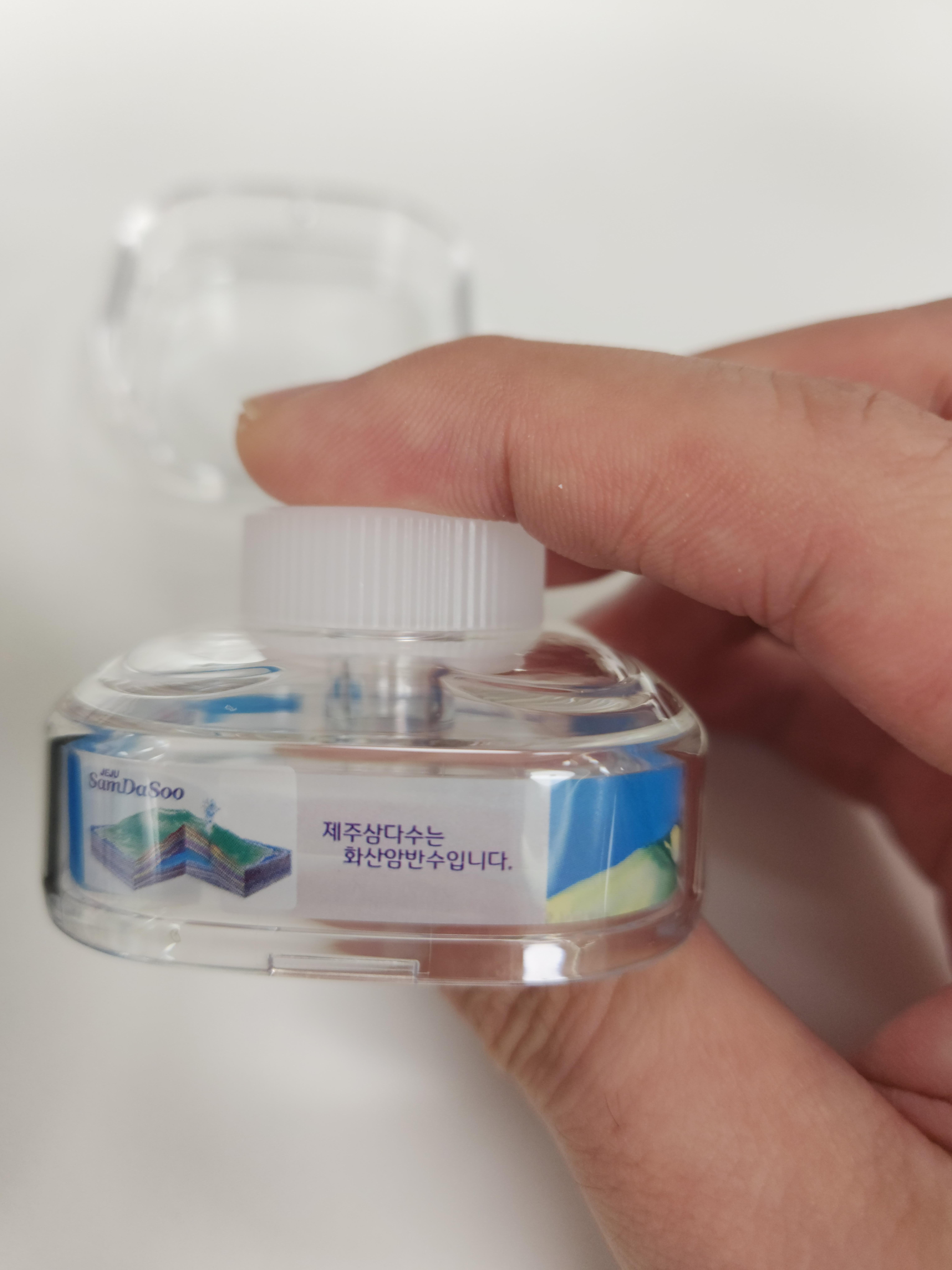 정말로 뚜껑이 열립니다! 물론 물 마시는 입구 부분의 크기 차이 때문에 기존 삼다수 물병 뚜껑과 호환되지는 않습니다.
