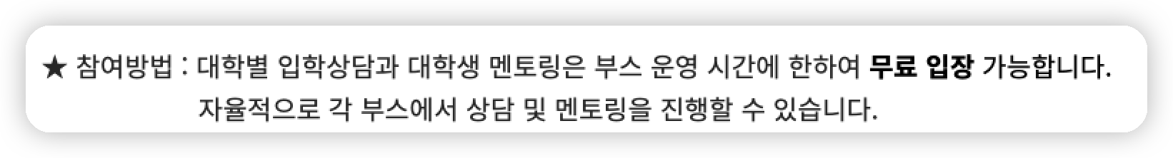 또한 2023년도 대입수시박람회에서는 고양시 대학생멘토단도 참여한다고 합니다. 이 멘토단은 선배의 입장에서 입시를 준비하는 학생들에게 직접적으로 와닿을 수 있는 여러 조언이나 경험 공유, 멘토링 등을 지원합니다.
