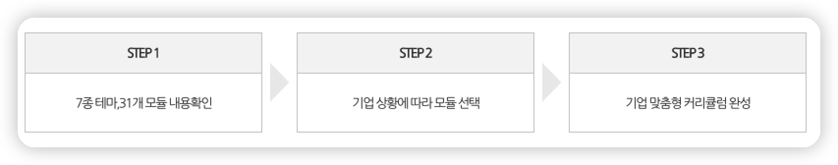 - 전직스쿨 프로그램 운영과정 : 7개 테마 / 31개 모듈에서 기업에 필요한 과정 선택하여 운영