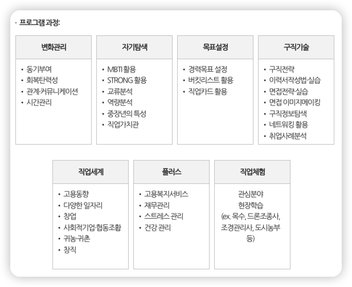 - 전직스쿨 프로그램 과정 : 기업 과정 / 일반과정 / 직업체험과정