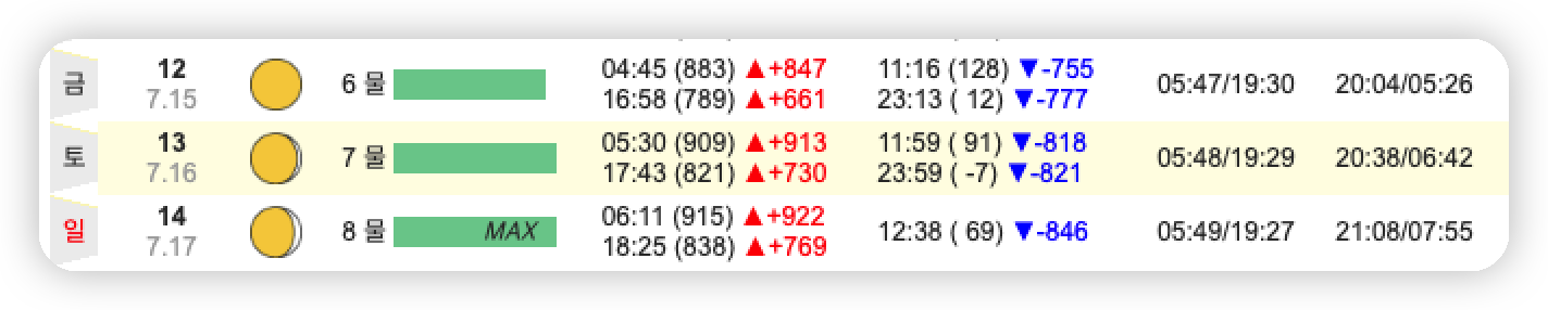 물때표 쉽게 보는 방법 위에서 확인해 보셨나요?