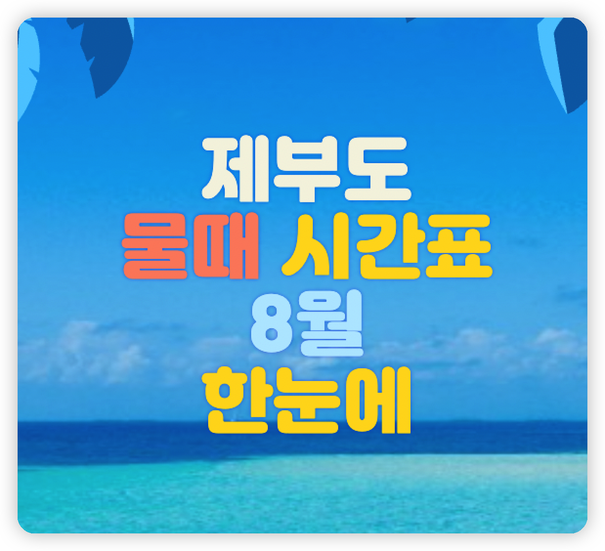 휴가철과 맞물려서 바다로 여행을 가시거나 계획하시는 분들이 많으실 것입니다. 하지만 휴가철은 차도 막히고 먼 거리를 싫어하시는 분들도 계시기 때문에, 서해바다 당일치기 여행이나 드라이브 다녀오시는 것도 좋은 대안입니다. 특히 서해에서는 제부도가 인기 있는 장소입니다. 제부도는 서해이기 때문에 물때 시간표에 따라 우리가 생각하는 바다의 모습을 하고 있기도, 또 아니기도 합니다. 제부도 물때 시간표 8월은 어떻게 되는지 알아보도록 하겠습니다.