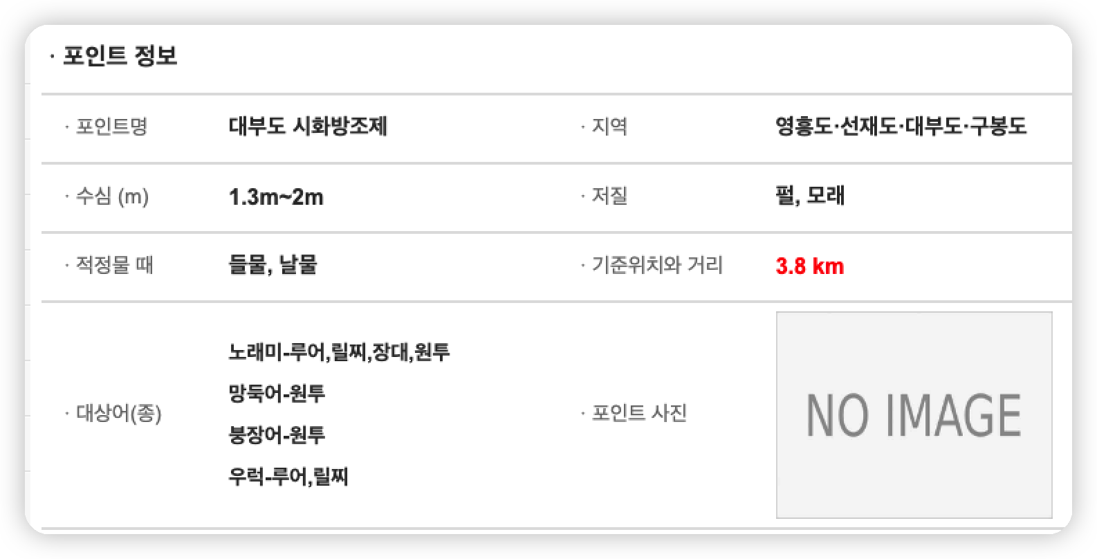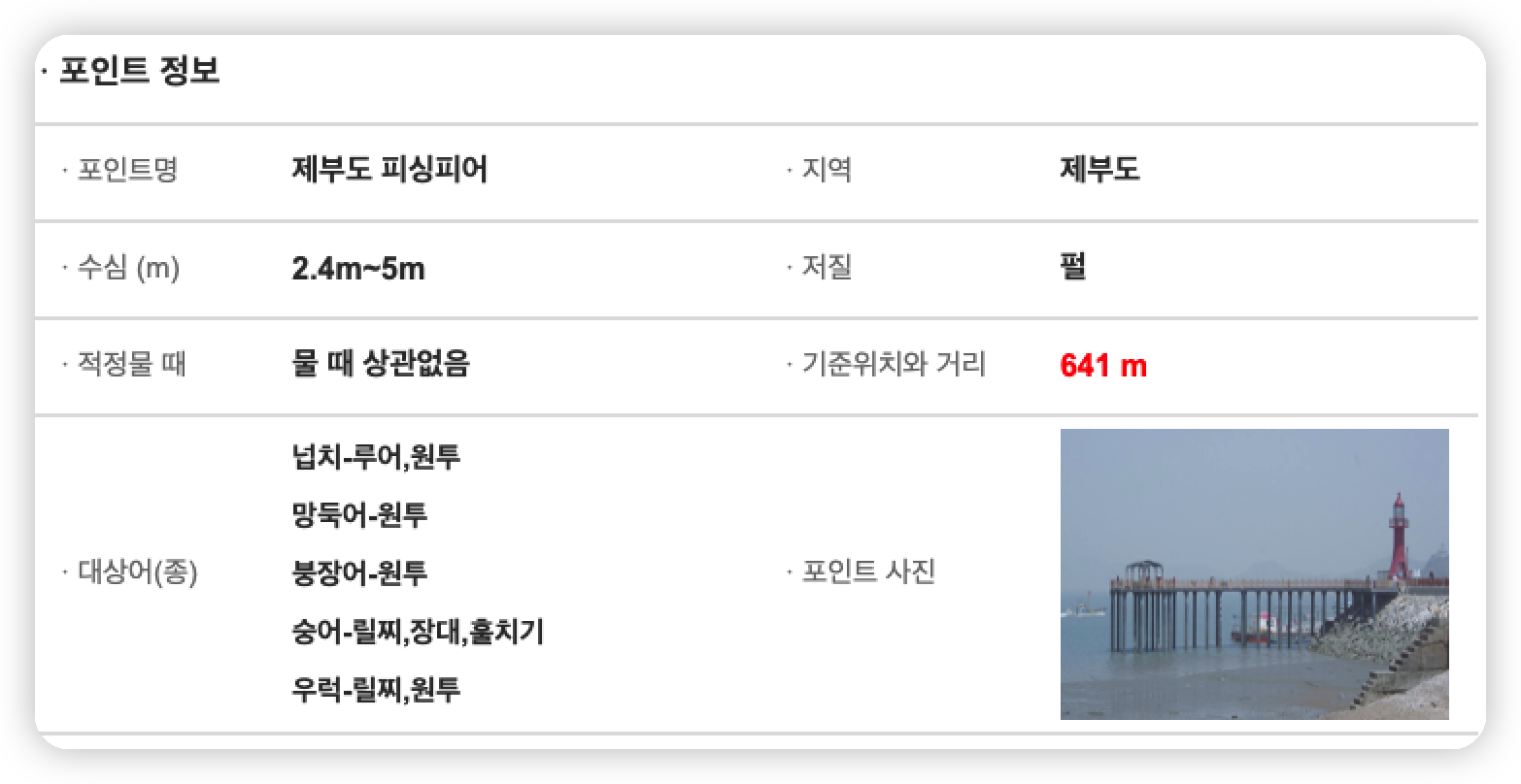 뿐만 아니라, 바다타임닷컴에서는 제부도 낚시 포인트에 대한 정보도 손쉽게 확인하실 수 있습니다.