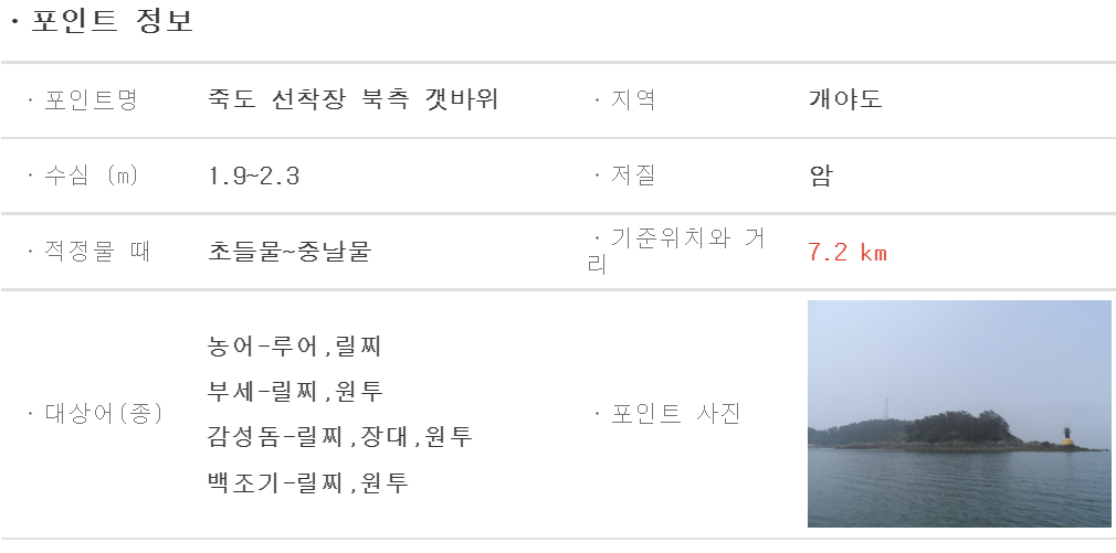 바다타임닷컴 홈페이지 우측 상단을 보시면, 낚시 포인트라는 메뉴가 있습니다. 해당 메뉴를 눌러보시면 낚시 포인트 사진과 더불어 기본적인 정보, 대상어종 등의 정보를 상세하게 확인하실 수 있습니다.