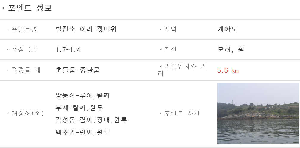 바다타임닷컴 홈페이지 우측 상단을 보시면, 낚시 포인트라는 메뉴가 있습니다. 해당 메뉴를 눌러보시면 낚시 포인트 사진과 더불어 기본적인 정보, 대상어종 등의 정보를 상세하게 확인하실 수 있습니다.