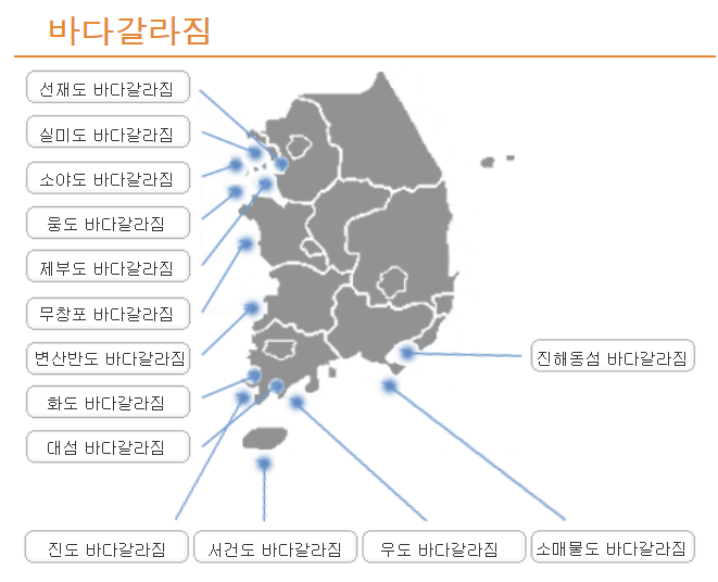 제부도 물때 시간표 뿐만 아니라, 이렇게 서해 주요 포인트별 물때표와 바다 갈라짐 시간 등의 정보도 바다 타임닷컴에서 한눈에 확인하실 수 있습니다.