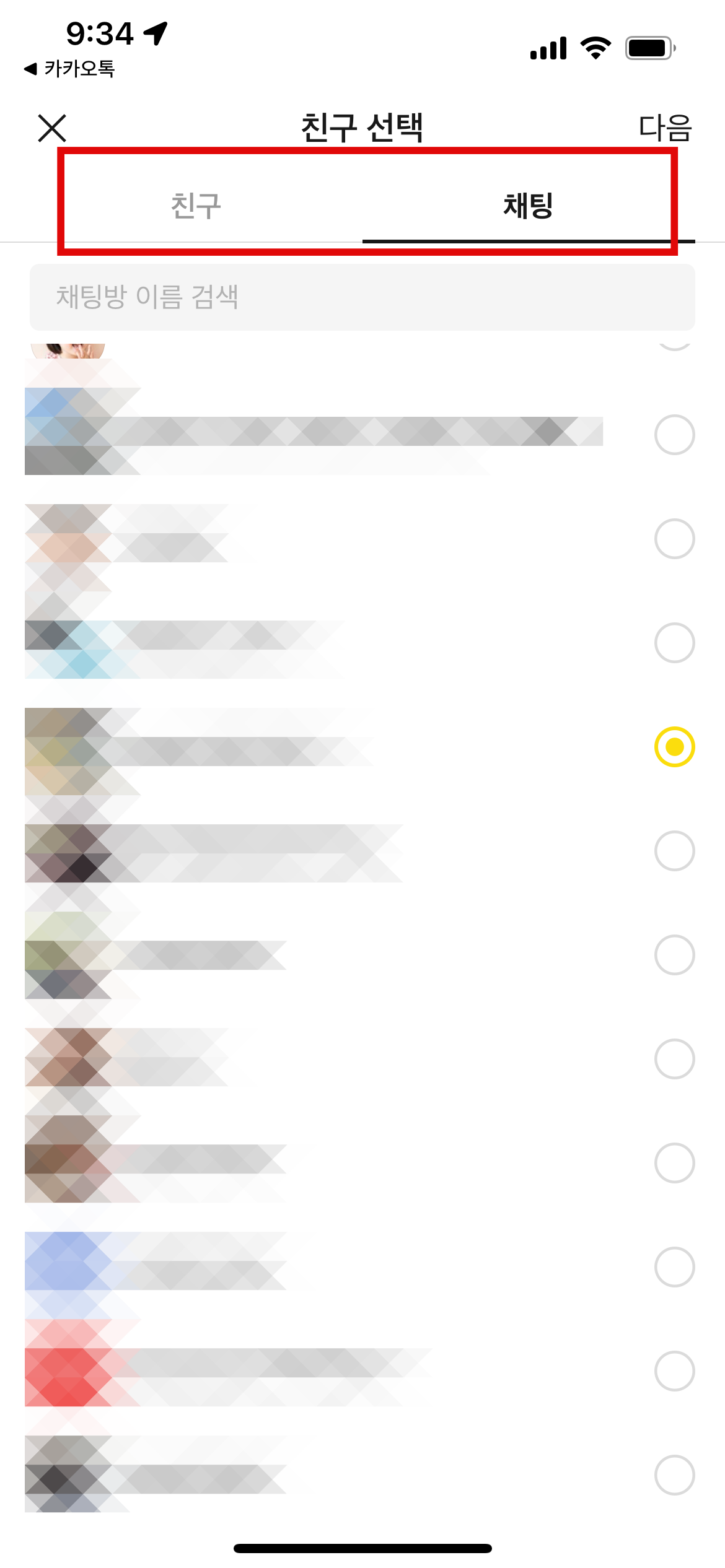 친구 초대하기 터치 후, 친구 목록 정보제공에 대한 동의 여부를 묻는 팝업이 뜹니다. 동의를 눌러주셔야 친구 초대가 진행이 가능합니다. 그럼 우측 사진과 같이 카카오톡 친구 목록이 뜹니다. 여기서 좋은 점은, 기존에 개설되어 있는 단톡방으로 한 번에 해당 멤버들 초대가 가능합니다.