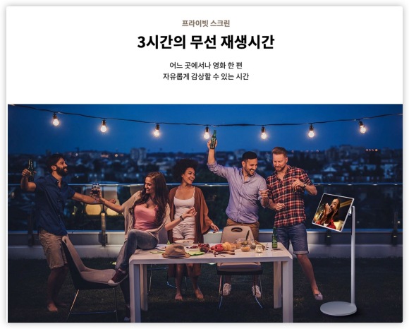 스탠바이미는 무선으로 3시간 가량 영상 혹은 TV 시청이 가능합니다.