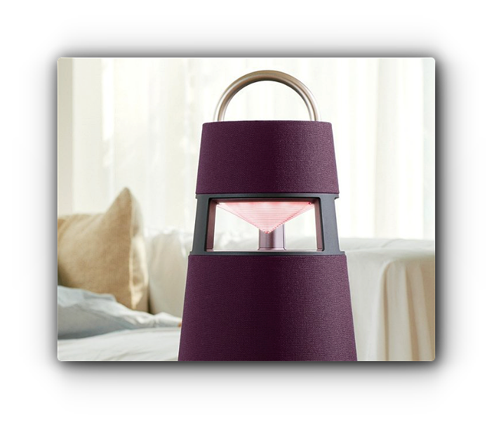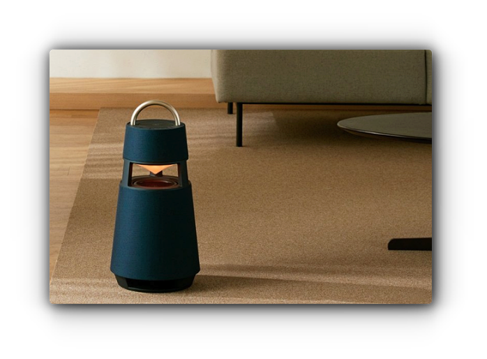 LG 엑스붐 360은 첫인상이 굉장히 깔끔하고 모던하다는 느낌입니다.