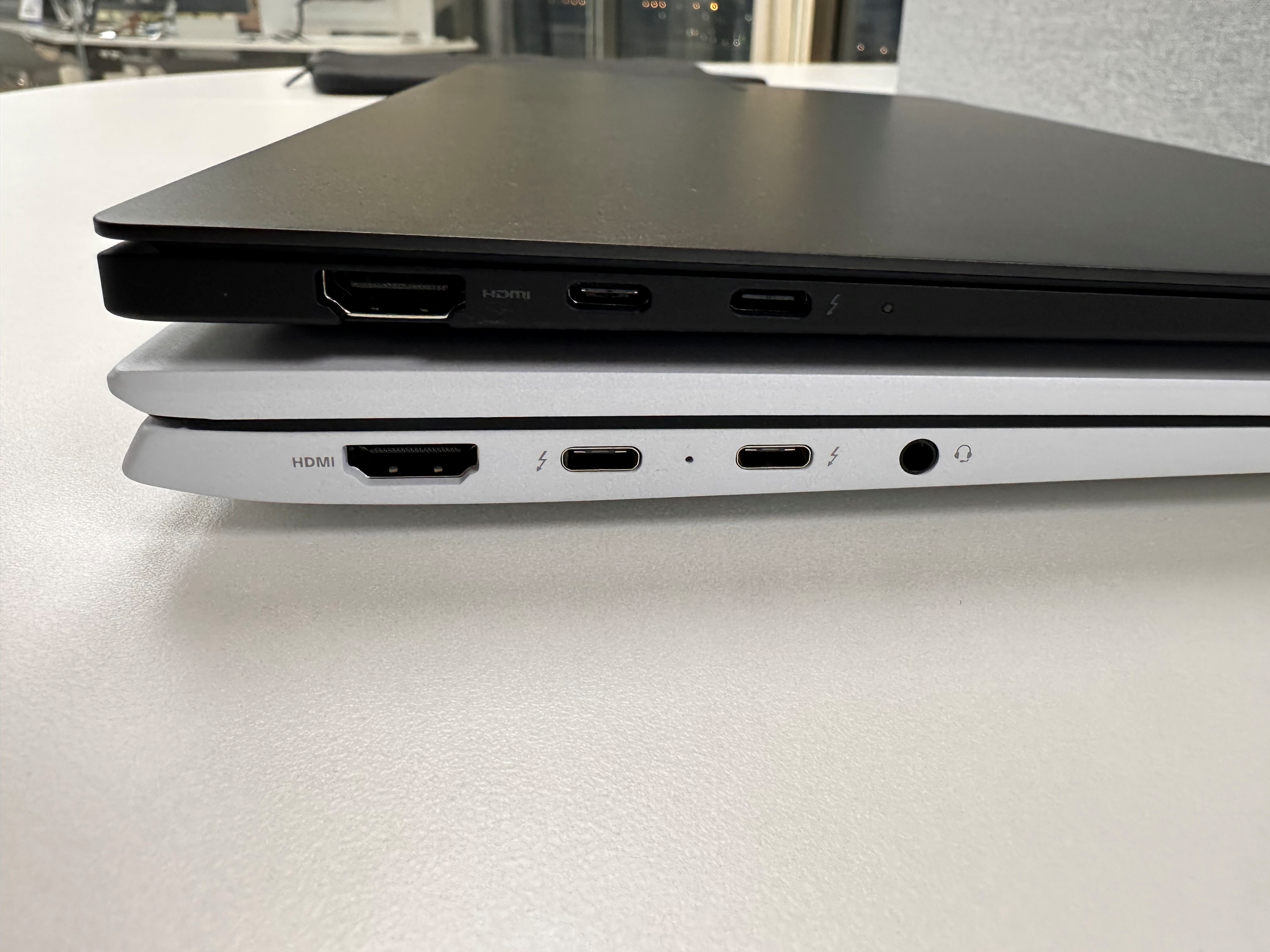 이번엔 두께입니다. 눈으로 봐도 LG 그램이 조금 더 두꺼운 게 눈에 띕니다.