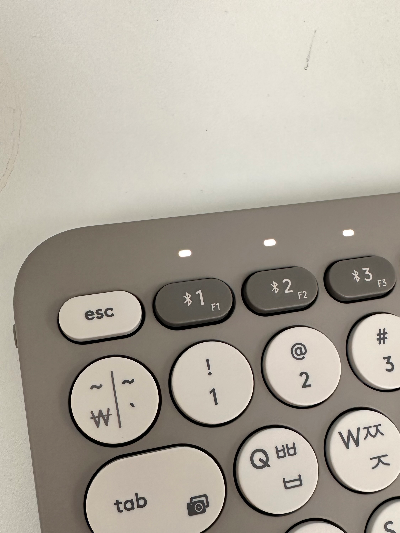 블루투스 키보드 로지텍 K380은 최대 3대의 기기를 블루투스로 등록해 두고, 버튼 하나로 간편하게 기기 3대를 바꿔가며 사용할 수 있다는 점이 굉장히 큰 장점입니다. 연결 LED 램프 역시 깨알같이 베이지 톤 색상입니다.