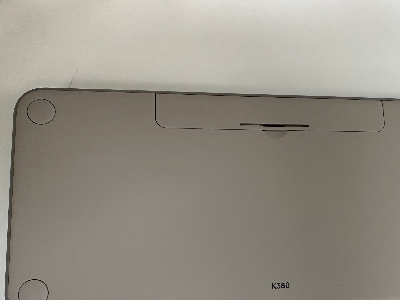 후면에는 미끄럼방지 패드가 네 귀퉁이에 자리하고 있고, K380 모델명이 아래쪽에 조그맣게 박혀 있습니다.