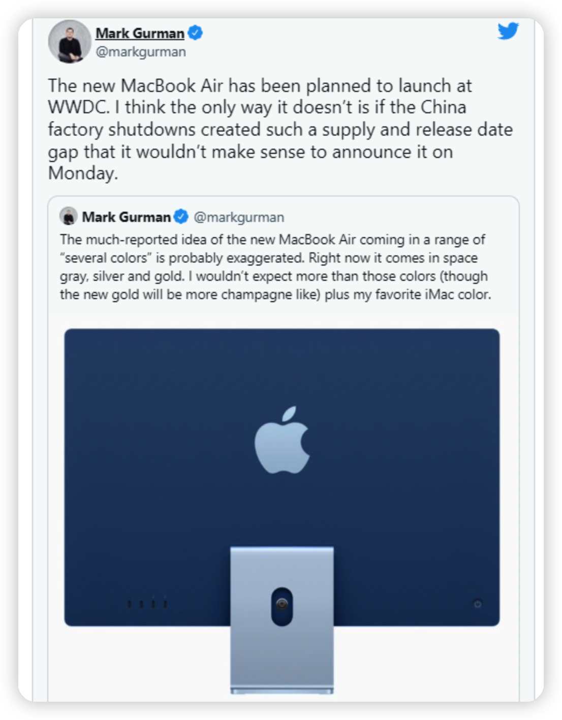 애플의 연례 개발포럼 행사인 WWDC가 코앞으로 다가왔습니다. 여기서 iOS 16, iPadOS 및 macOS 등 소프트웨어 위주로 발표될 것이 유력하지만, 하드웨어의 경우 M1 맥북에어의 후속인 M2 맥북에어가 공개될 것이라는 관측이 많이 나오고 있습니다.