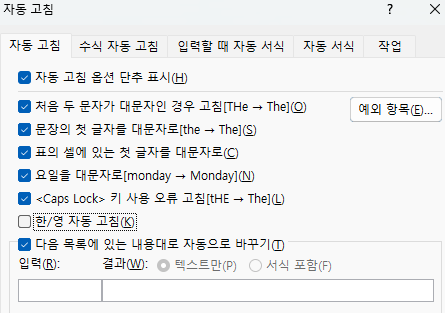 MS 워드 한글 영어 자동 변환 끄는 방법