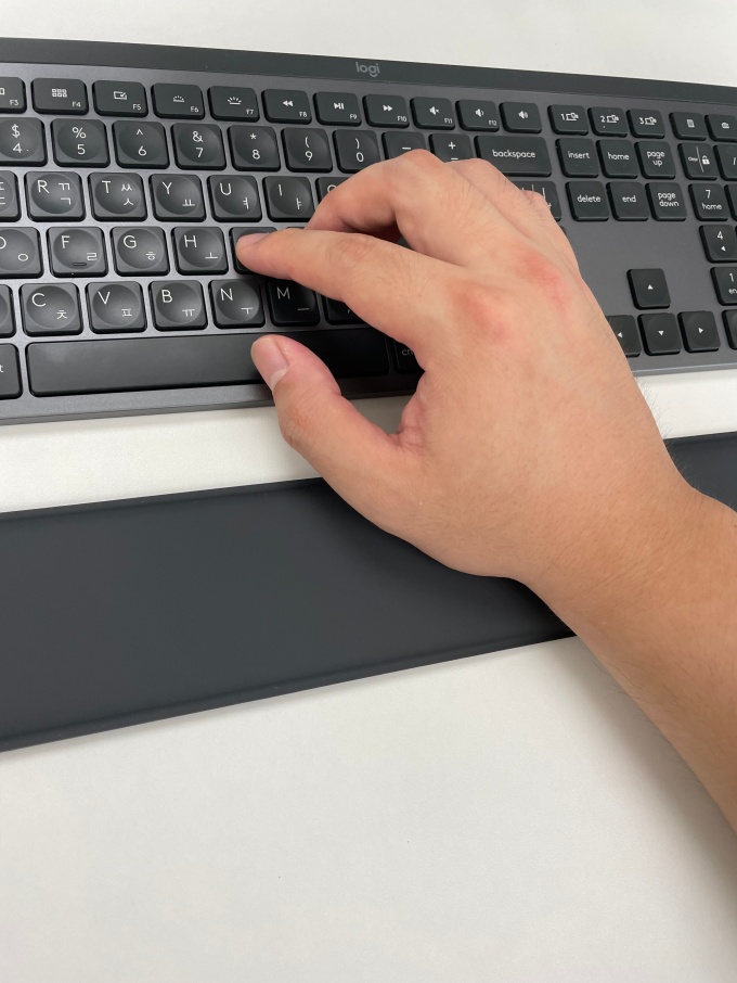 저는 MX 팜레스트를 키보드에 딱 붙여서 사용하는 것보다, 요정도로 살짝 거리를 두고 사용하는 게 더 편안하게 느껴졌습니다.