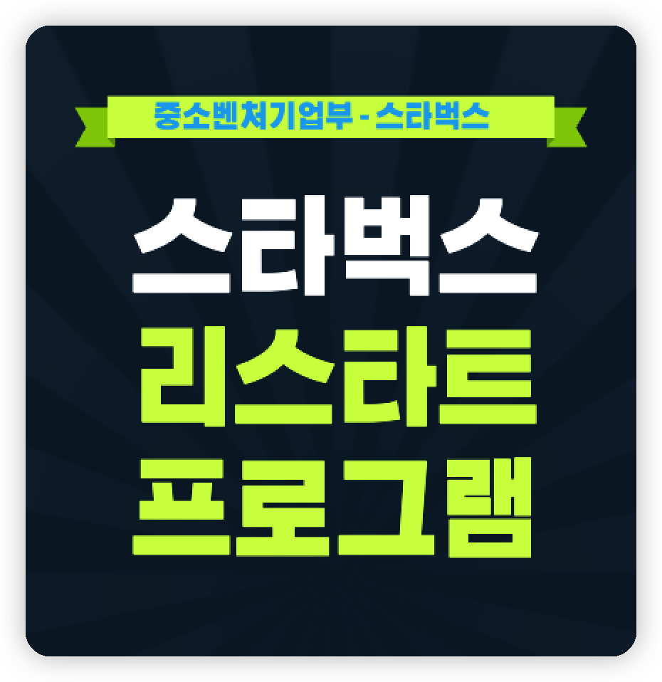중소벤처기업부와 소상공인시장진흥공단에서 스타벅스 코리아와 함께 폐업했거나 폐업 예정인 소상공인들의 재기를 돕기 위해 소상공인 창업 및 취업 프로그램인 스타벅스 리스타트 프로그램을 운영합니다. 민간기업, 그것도 외국계 기업과 국가 기관이 함께 이렇게 소상공인을 돕는 프로그램을 진행하는 케이스는 흔치 않은 것 같습니다. 그럼 스타벅스 리스타트 프로그램 신청 방법은 어떻게 되고, 자격요건은 어떻게 되는지 알아보도록 하겠습니다.