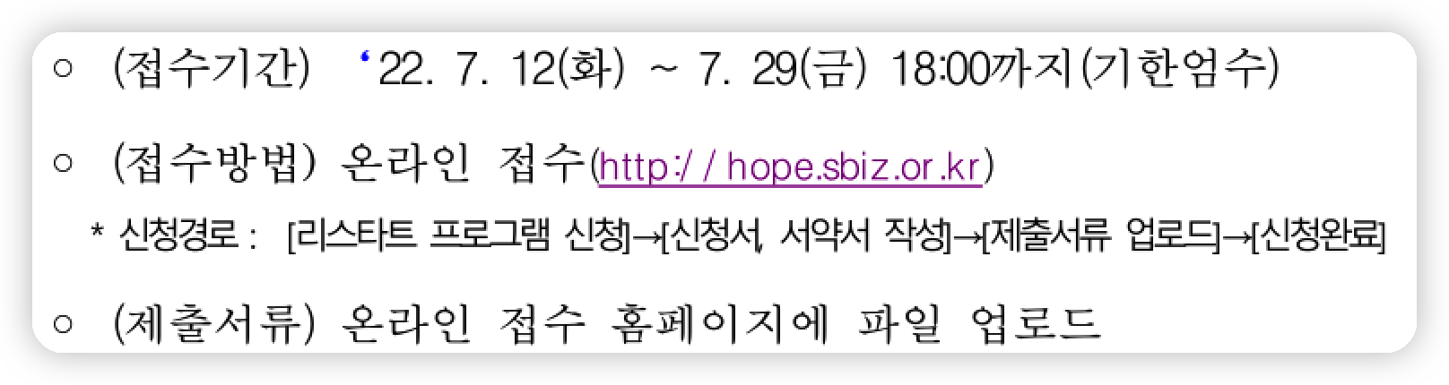 서류 접수기간은, 7월 12일부터 7월 29일까지입니다. 반드시 기한 내에 접수하셔야 유효하다고 하니 참고하시면 되겠습니다.