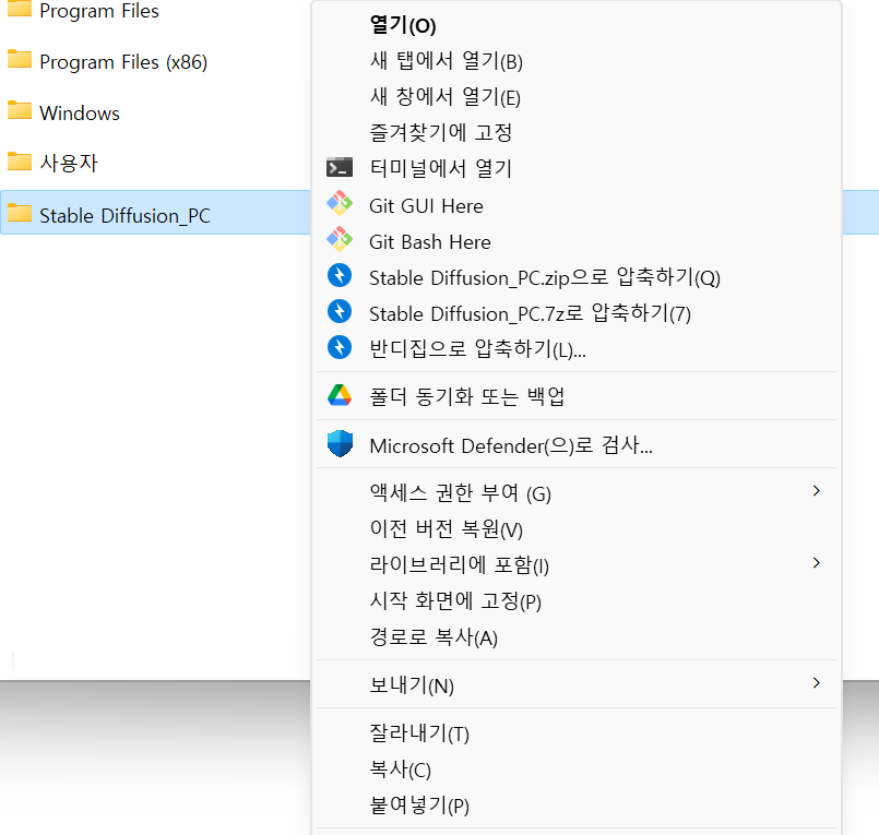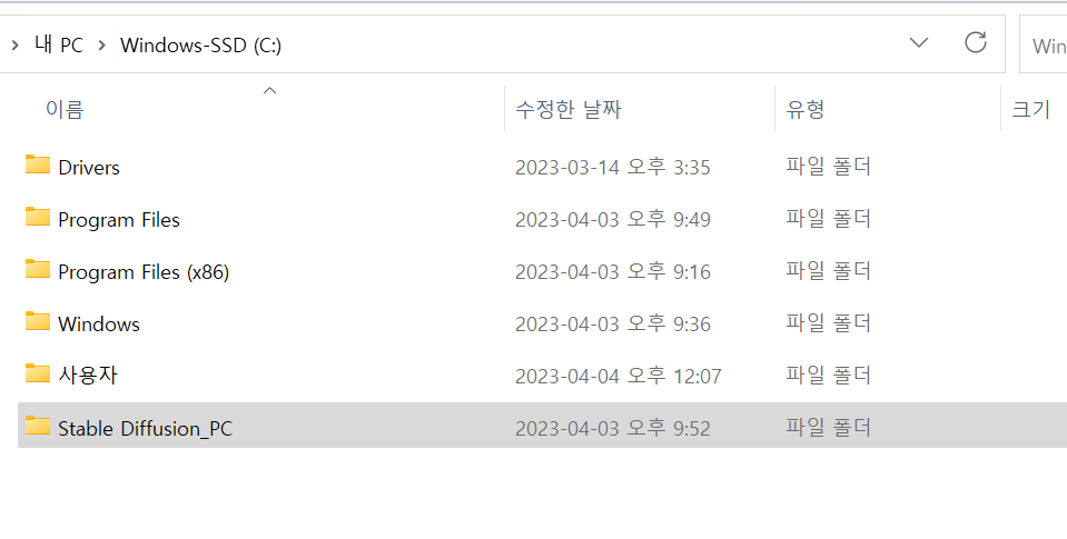 4. 드라이브에 스테이블 디퓨전 설치 폴더 생성
