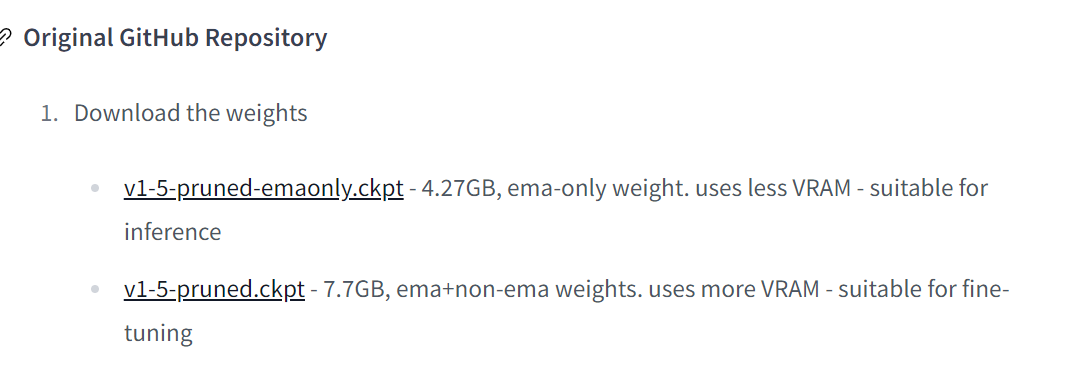 스테이블 디퓨전에 대해 여기서 설명을 하기에는 좀 길지만, 스테이블 디퓨전은 '화가'라고 불리는 모델(체크포인트)을 설치해야 실행할 수 있습니다. 모델(체크포인트) 다운로드를 위해 위 2번 허깅페이스로 이동합니다.