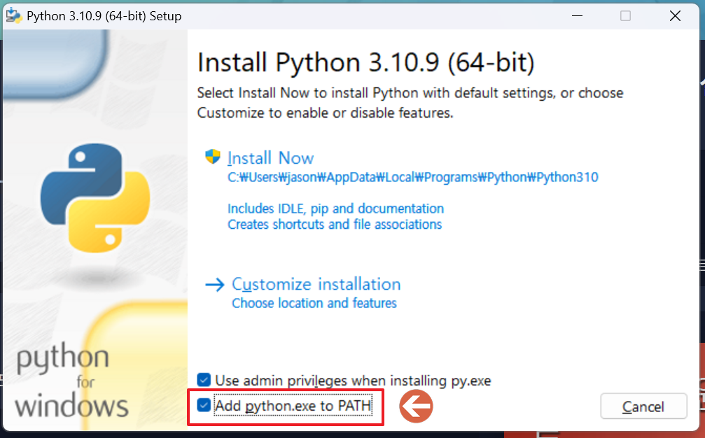 호환성 문제 때문에 무조건 최신 버전이 아닌 3.10.9로 설치해 줍니다.