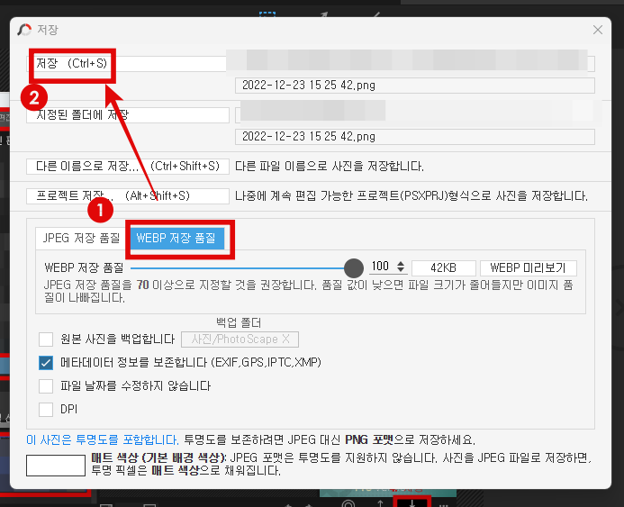 포토스케이프는 heic jpg 변환뿐만 아니라, 최근 인터넷에서 뜨고 있는 webp 변환도 가능합니다.